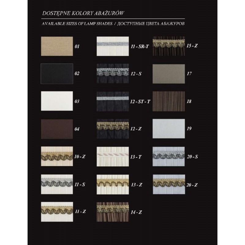 Тип поверхности плафонов и подвесок Текстиль