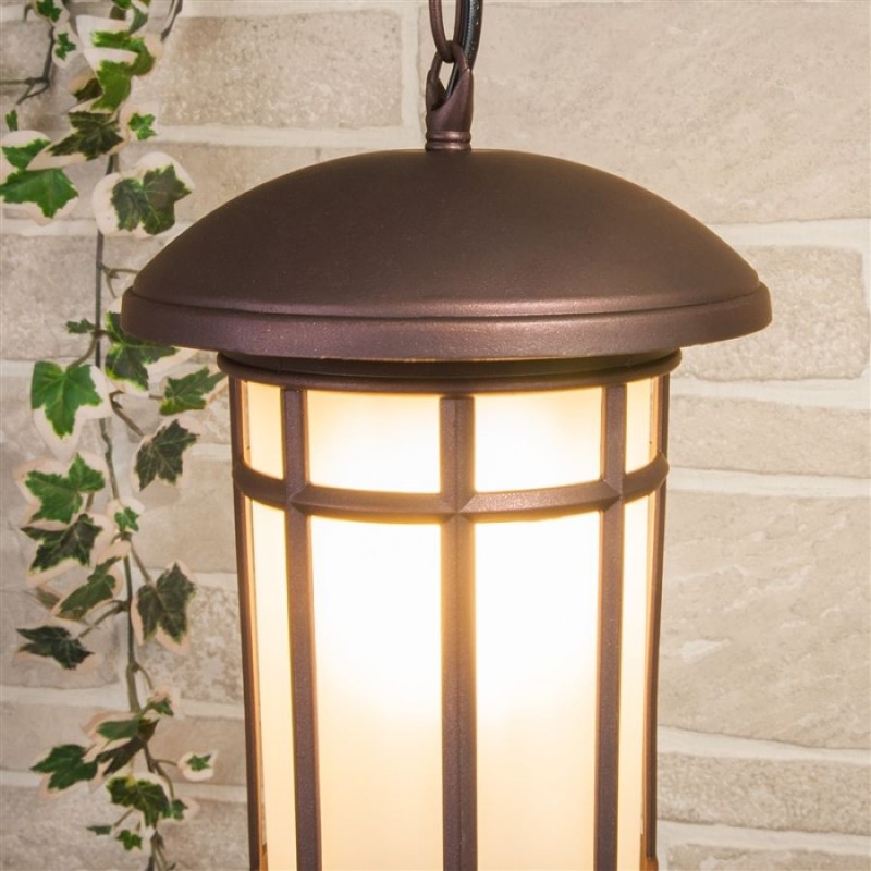 Уличный светильник подвесной Lepus GL 1016H — модель от фабрики Elektrostandard. Основа светильника выполнена из металла коричневого цвета, плафон из стекла белого цвета. Светильник будет хорошо смотреться в кафе, веранде и беседке и удачно впишется в интерьер в стиле классический, модерн. Модель имеет 1 лампочку, оснащена цоколем E27 с максимальной мощностью лампочки 60 Вт и рассчитана на освещение площади до 3 кв. м. Степень защиты от влаги и пыли — IP33. Модель устанавливается на металлический крюк. Есть возможность регулировать модель по высоте и подключить диммер.